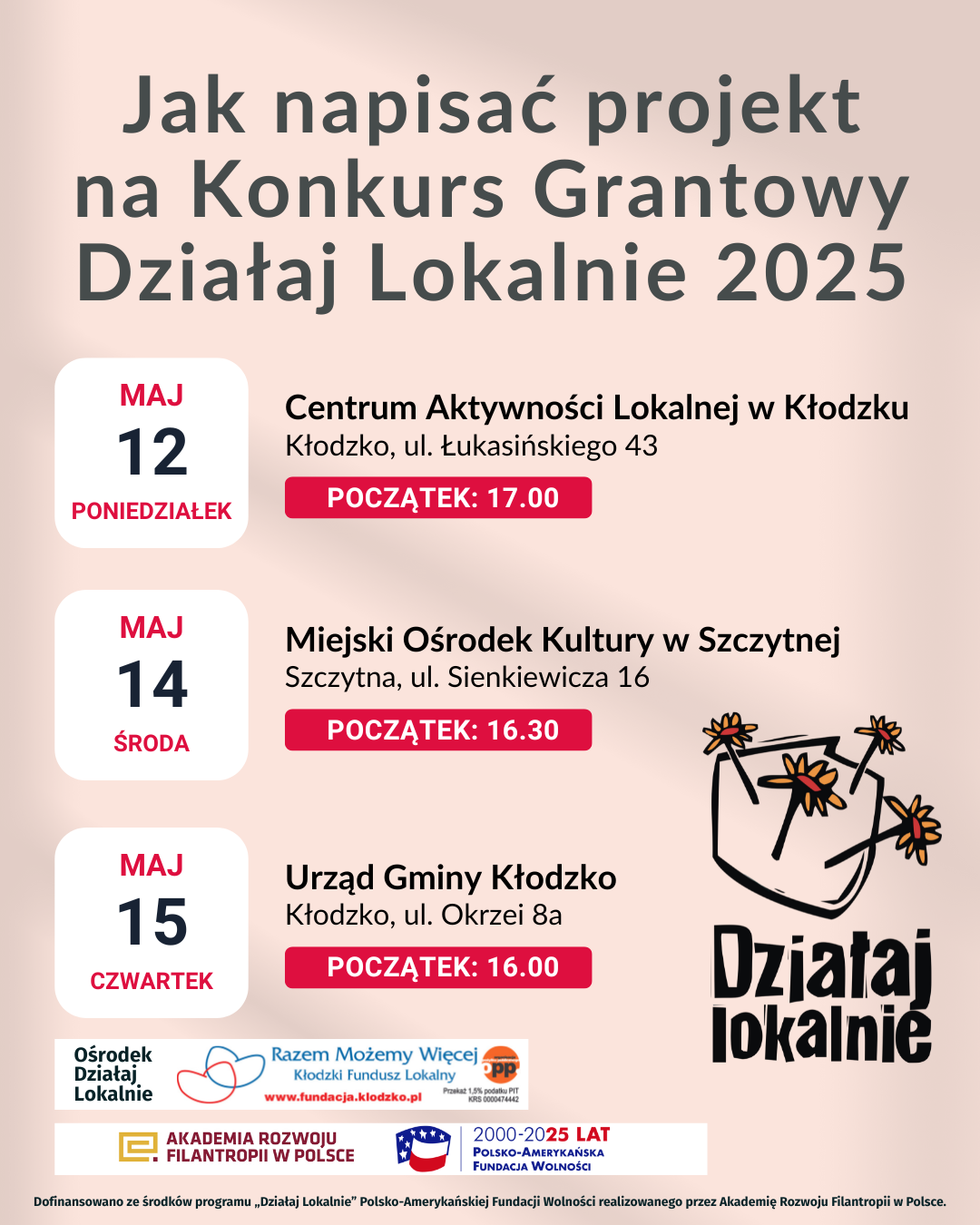 „ Działaj Lokalnie” to program Polsko-Amerykańskiej Fundacji Wolności, realizowany przez Akademię Rozwoju Filantropii w Polsce i fundację Razem Możemy Więcej Kłodzki Fundusz Lokalny – jako...